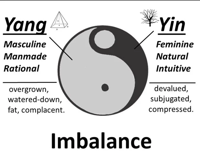 So if the diagnosis for our inability to think, feel and act reasonably and in a human fashion, lies in the imbalance between an overdeveloped knowledge of our external world (intellectual/material/yang) and underdeveloped knowledge of our internal world (emotional/spiritual/yin), the prescription for treatment seems obvious: relax on obtaining knowledge about our external world, and accelerate on obtaining knowledge about our internal world. We need more Yin and less Yang.